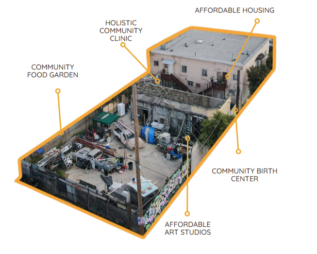 Planning for future community garden, art co-operative, and additional housing in the back lot.